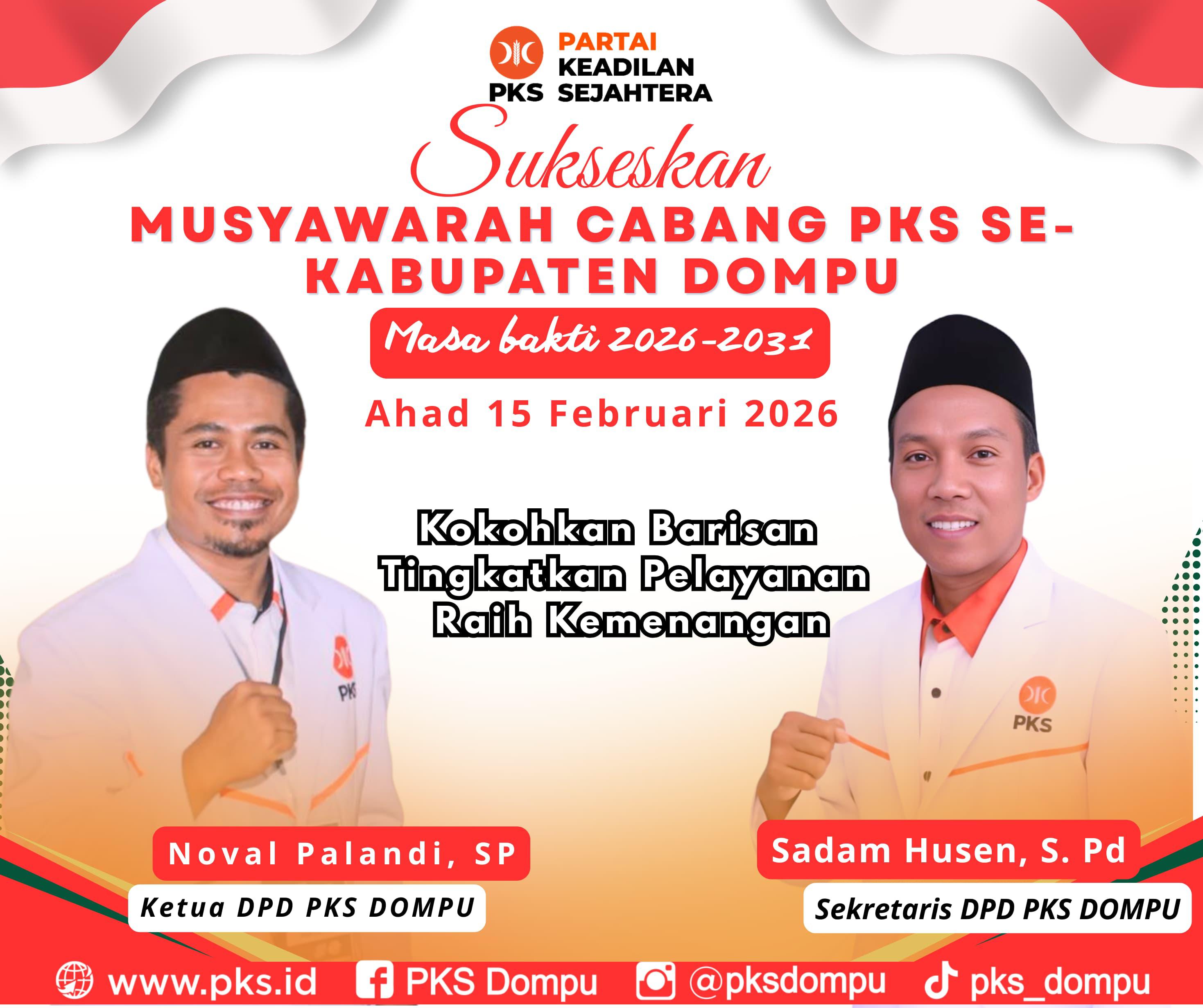 ERANTB.COM – DPD PKS Kabupaten Dompu Mengucapkan Selamat Atas di Gelar Musyawarah Cabang Partai Keadilan Sejahtera Se-Kabupaten Dompu Massa Bakti 2026-2031, Minggu 15 Februari 2026.
