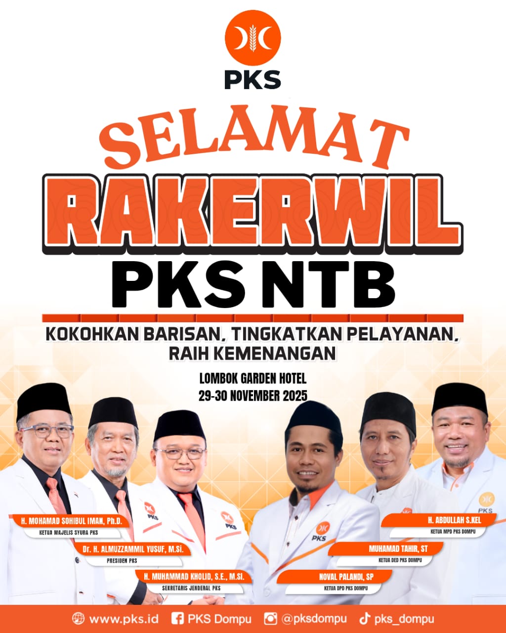 ERANTB.COM- Dompu- Daerah Pimpinan Tinhkat Daerah PKS Kabupaten Dompu Mengucapkan Selamat Rakerwil DPW PKS NTB diHotel Lombok Garden 29-30 November 2025.