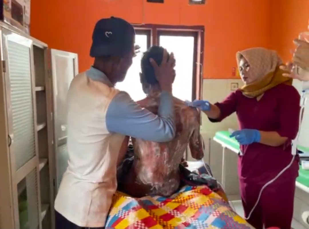 Akibat insiden tersebut, korban mengalami luka bakar serius di hampir seluruh tubuhnya. Personel Polsek Plampang yang tiba di lokasi langsung mengevakuasi korban ke Puskesmas Plampang. Karena luka yang diderita cukup parah, korban kemudian dirujuk ke RSMA Sumbawa untuk mendapatkan penanganan medis spesialis.